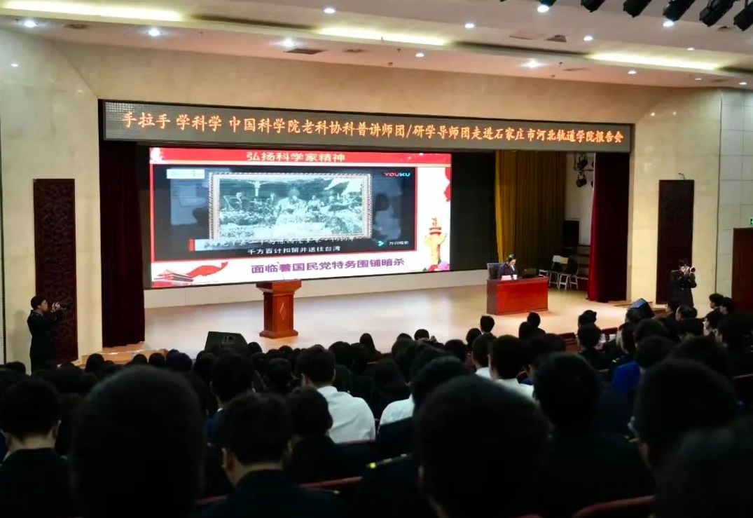 河北省老科协铁道分会秘书长葛建生、老专家工作站站长耿增朝、付金恒、宣传统战部副部长冯子晔出席活动,全校教职员工和学生通过线上线下方式参加。活动由冯子晔主持。